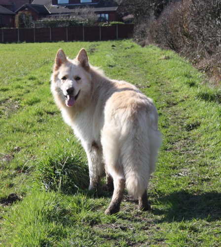 She has a lovely temperament, a liitle aloof with strangers and neutral with other dogs.